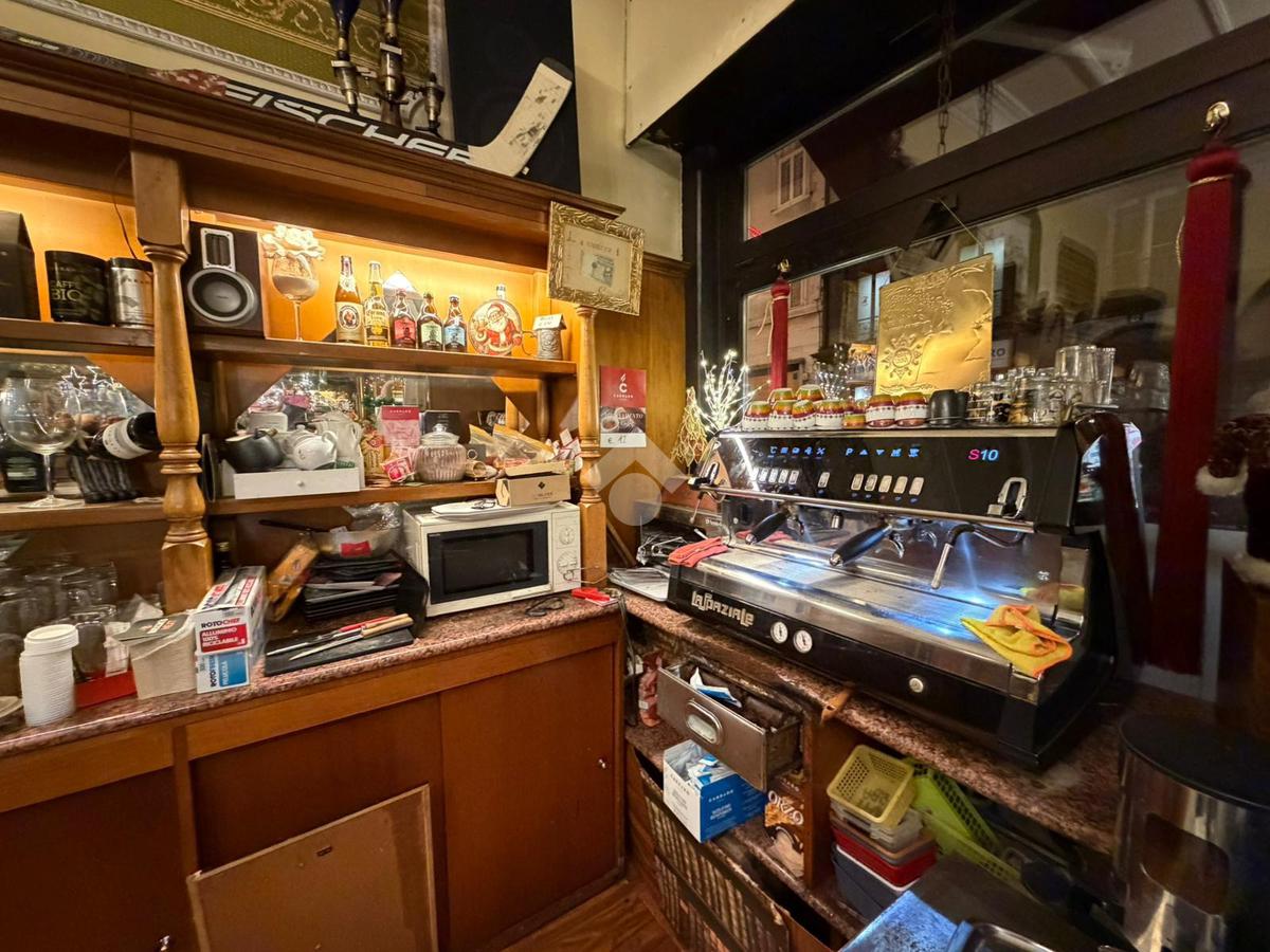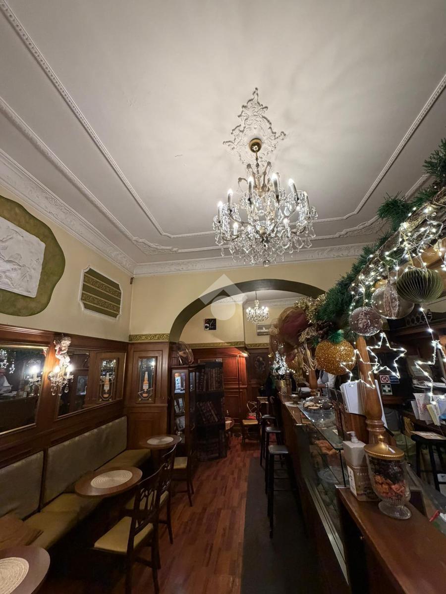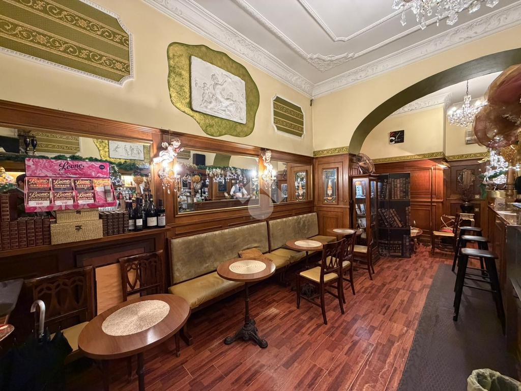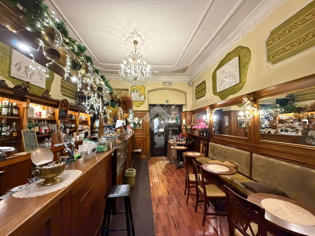 All'interno del locale troviamo dei soffitti decorati, un arco in pietra e tutto l'arredo in legno ottimamente conservato. Il foro commerciale ben si presta sia a continuare l'attività di bar sia per una qualsisi altra attività a contatto diretto con il pubblico vista la zona densamente popolata.