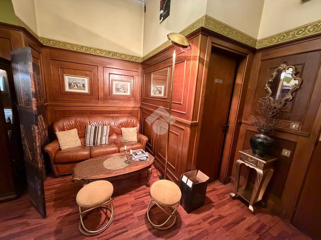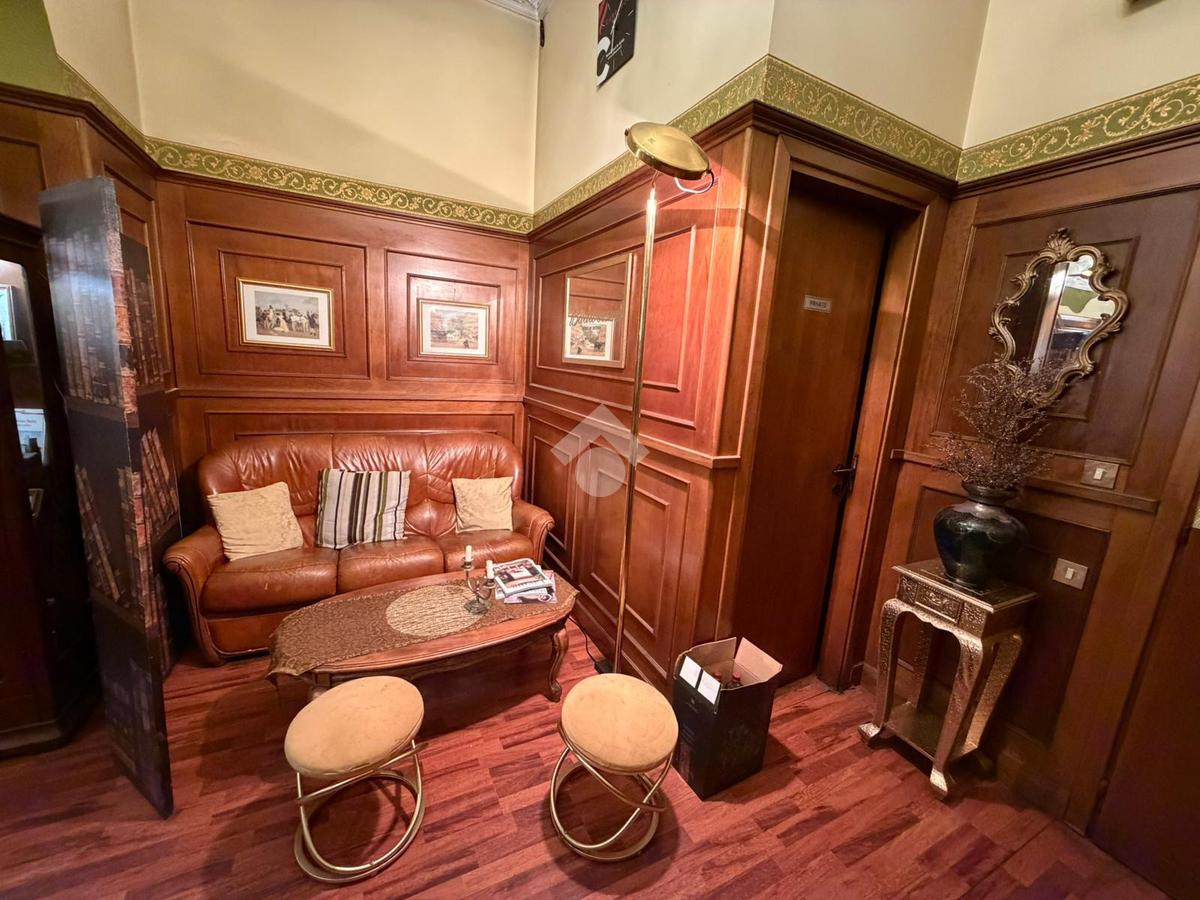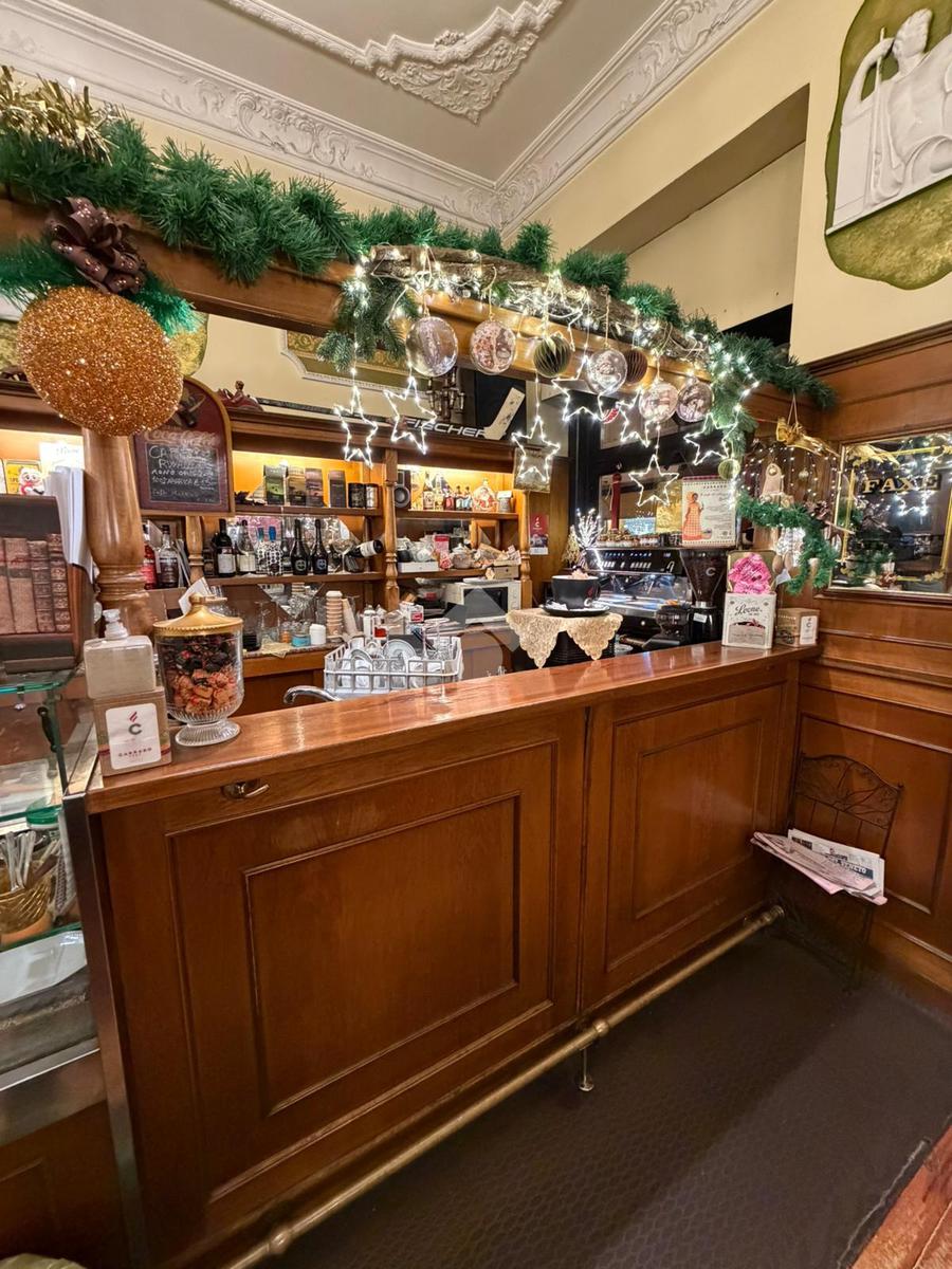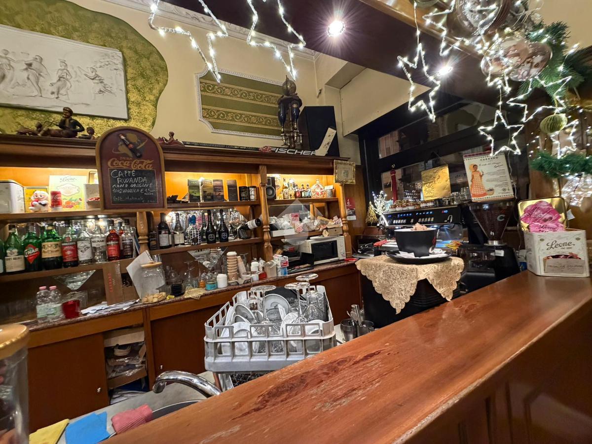 All'interno del locale troviamo dei soffitti decorati, un arco in pietra e tutto l'arredo in legno ottimamente conservato. Il foro commerciale ben si presta sia a continuare l'attività di bar sia per una qualsisi altra attività a contatto diretto con il pubblico vista la zona densamente popolata.