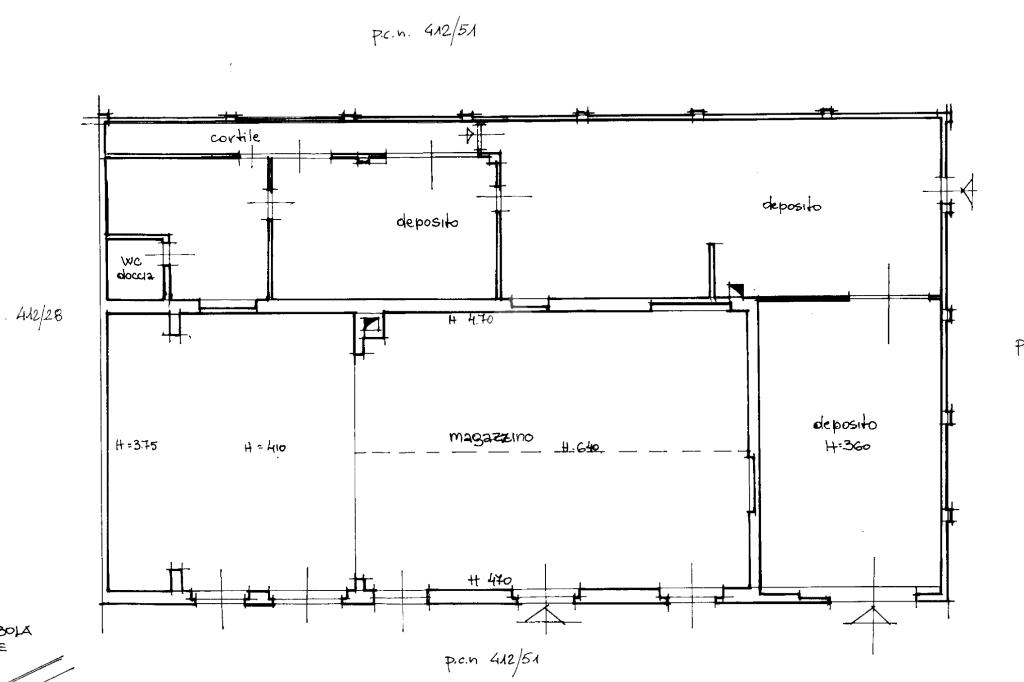 Il resto del lotto è formato da un'area di deposito che può essere utilizzata in parte come parcheggio per le vetture e in parte come area di stoccaggio merci. Sempre in questa zona è situato un bagno.