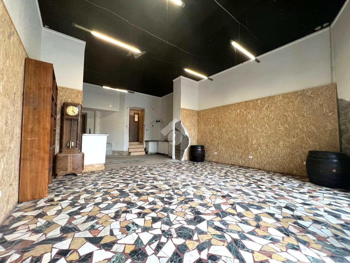 Internamente l' immobile si compone di un principale vano open space, un' servizio igienico finestrato e dotato di antibagno, un retrobottega e un' ampio magazzino sul retro.