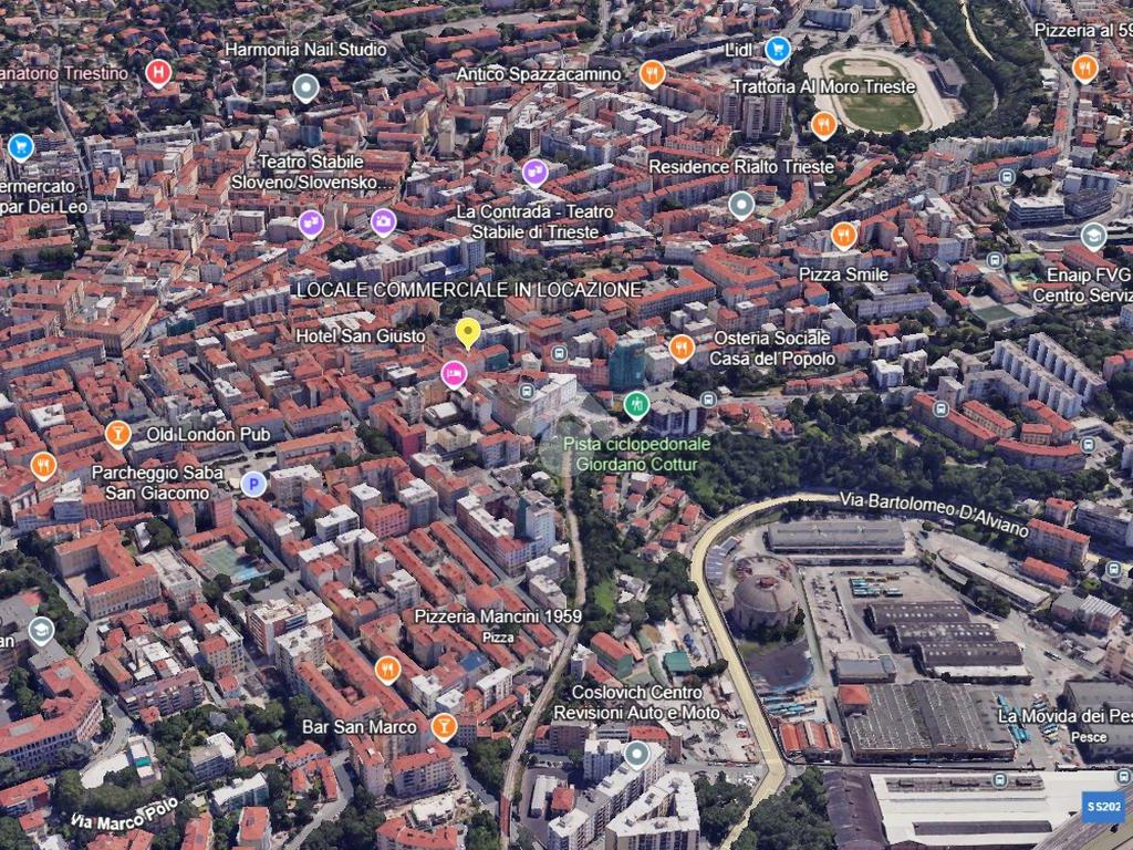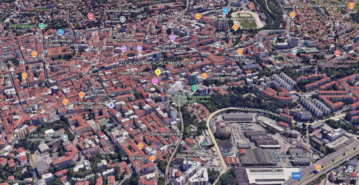 Il locale commerciale proposto in locazione è situato in Via Dell'Istria, strada fortemente trafficata del rione di San Giacomo, uno dei più vivaci della città. Nelle immediate vicinanze possiamo trovare numerose attività, come bar, negozi di vendita al dettaglio e studi professionali. L'immobile si trova a pochi minuti di macchina dal centro di Trieste, risultando facilmente raggiungibile anche attraverso i numerosi mezzi di pubblici.