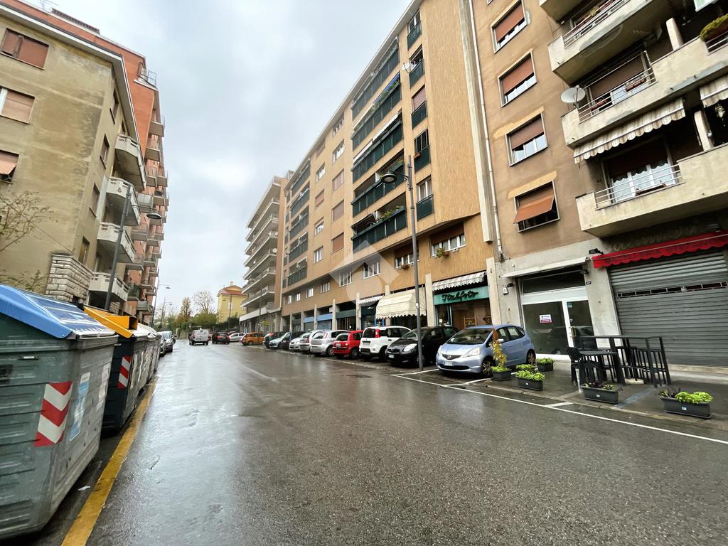 L’immobile è composto da tre vani così suddivisi: il primo è l’ambiente principale del negozio, con accesso diretto da Via Combi e ampia vetrina fronte strada; troviamo poi un vano ripostiglio ed un servizio igienico finestrato.