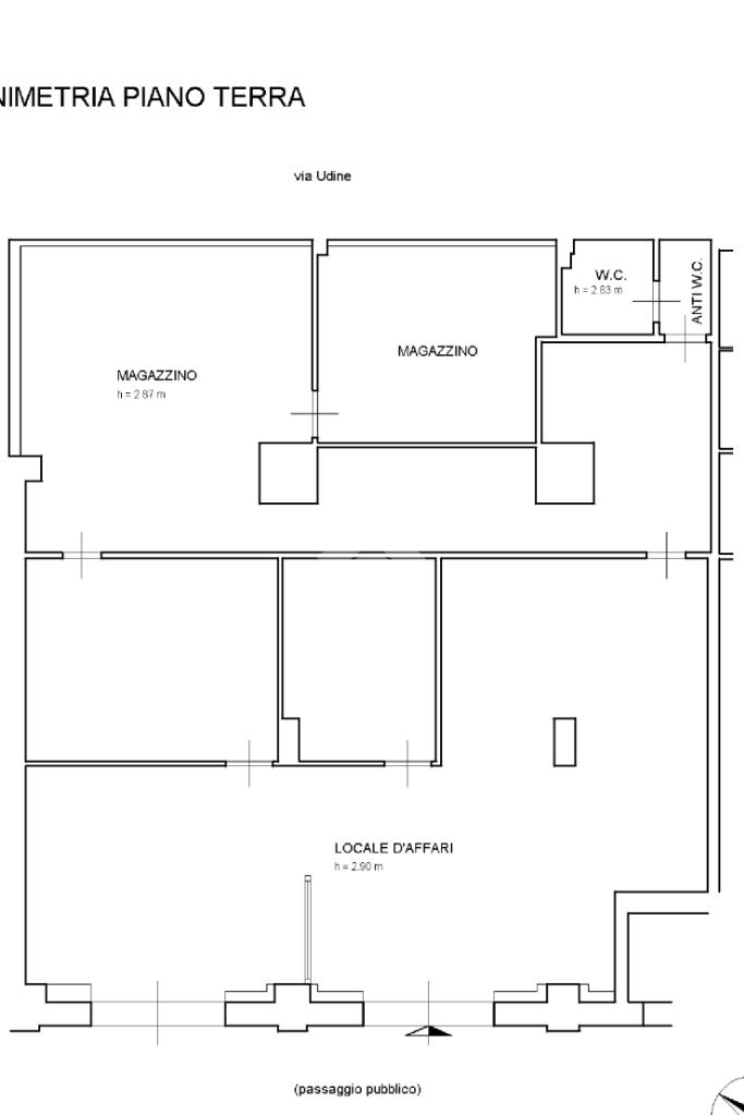 Accedendo all’immobile troviamo una zona principale di circa 105 m² costituita da un vano open space e due ulteriori ambienti. Nella parte retrostante troviamo un’ampia area di circa 80 m² destinata a zona di deposito.