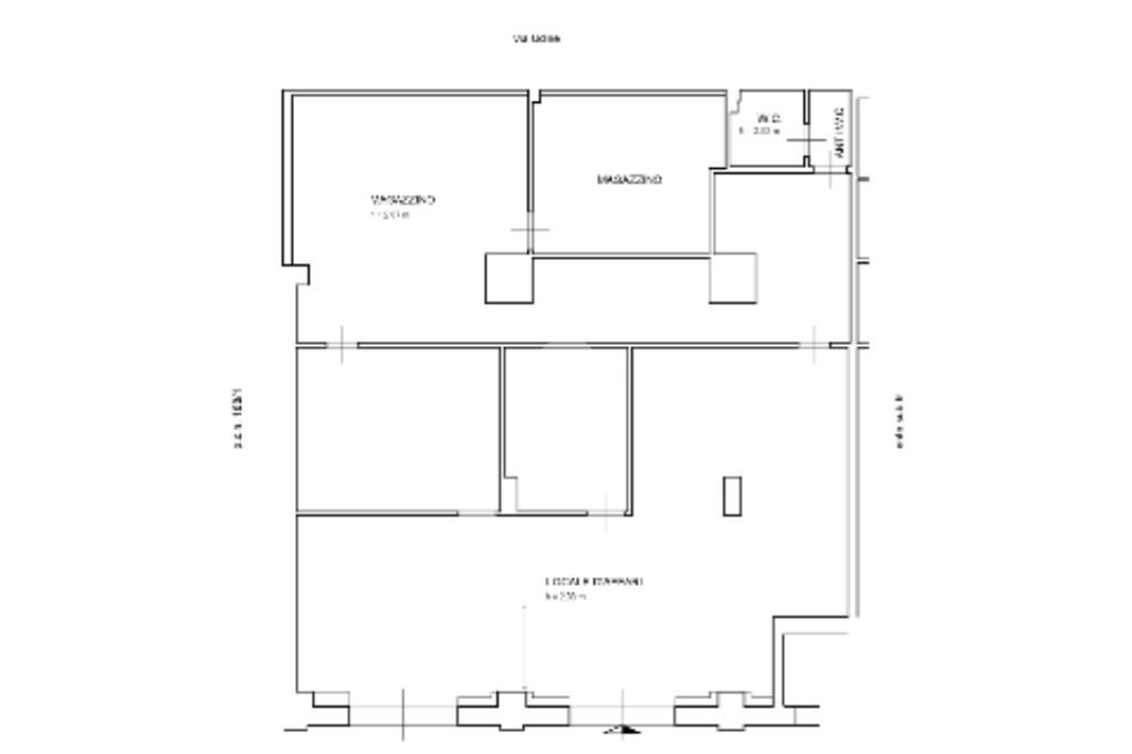 Accedendo al primo dei due fori commerciali troviamo una zona principale di circa 105 m² costituita da un vano open e altre due stanze. Nella parte retrostante l’area di vendita troviamo un’ampia area di circa 80 m² destinata a zona di deposito. Completa la proprietà un servizio igienico dotato di antibagno.