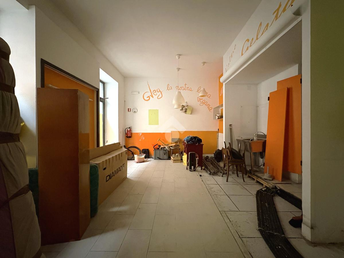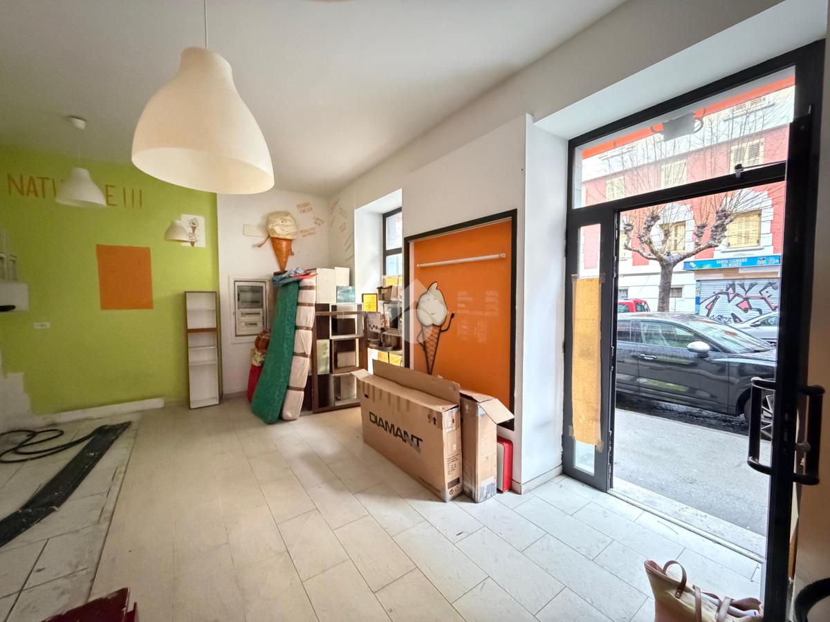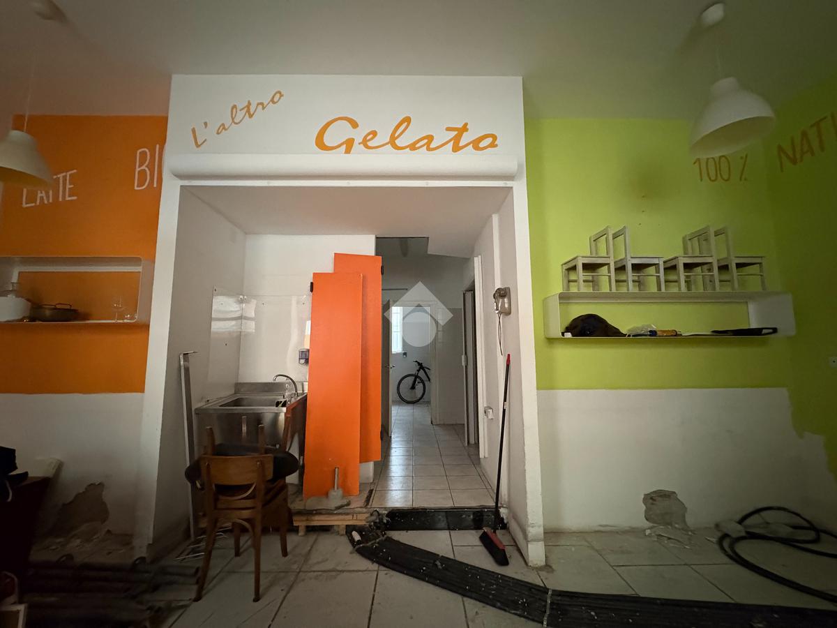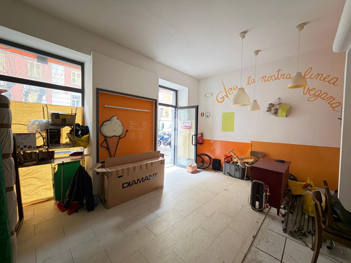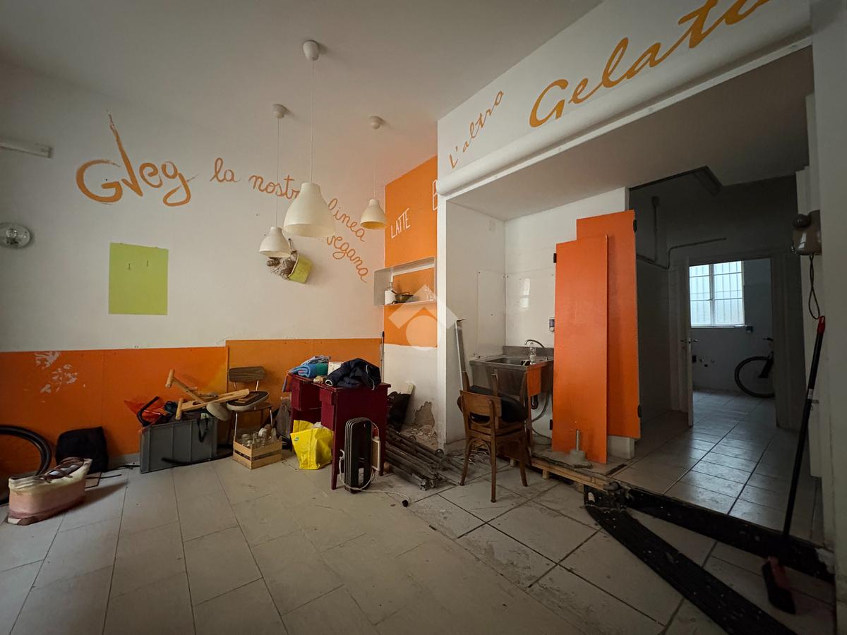Il locale commerciale si sviluppa su due spaziosi ambienti: un'area di vendita fronte strada con due vetrine ed un'area di laboratorio esposta sula corte interna e dotata di due finestre. Completano la proprietà due ripostigli ciechi, uno spogliatoio finestrato ed un wc finestrato.