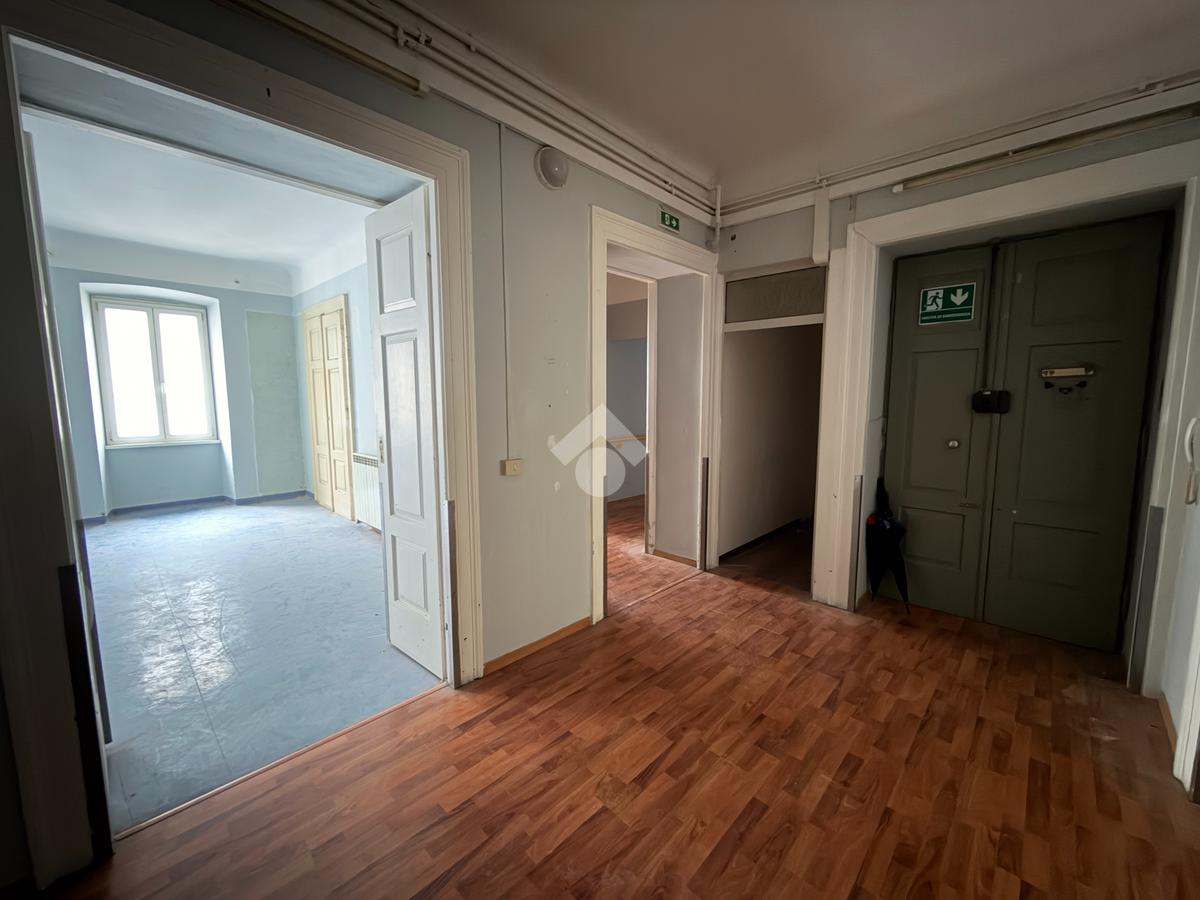L’ufficio si trova al terzo piano dello stabile dotato di ascensore. Internamente è composto da cinque stanze, due servizi igienici finestrati, due ripostigli e una cucina.