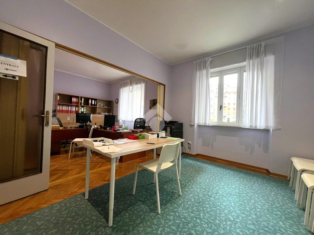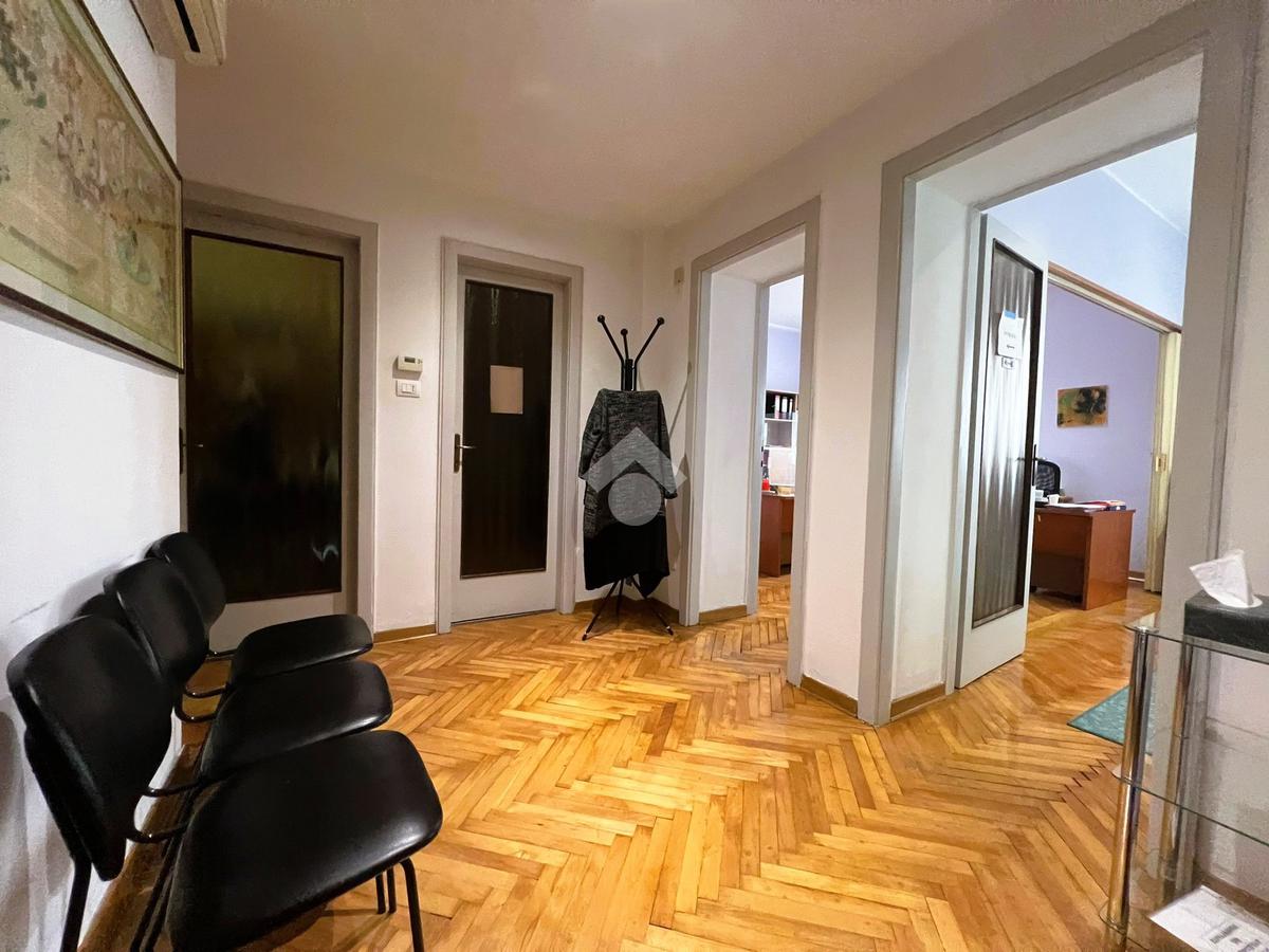 Grazie alle due finestre fronte strada, ed un balcone affacciato sulla corte interna, gli ambienti risultano particolarmente luminosi, ideali per studi professionali, società di consulenza, coworking o ambulatori privati.