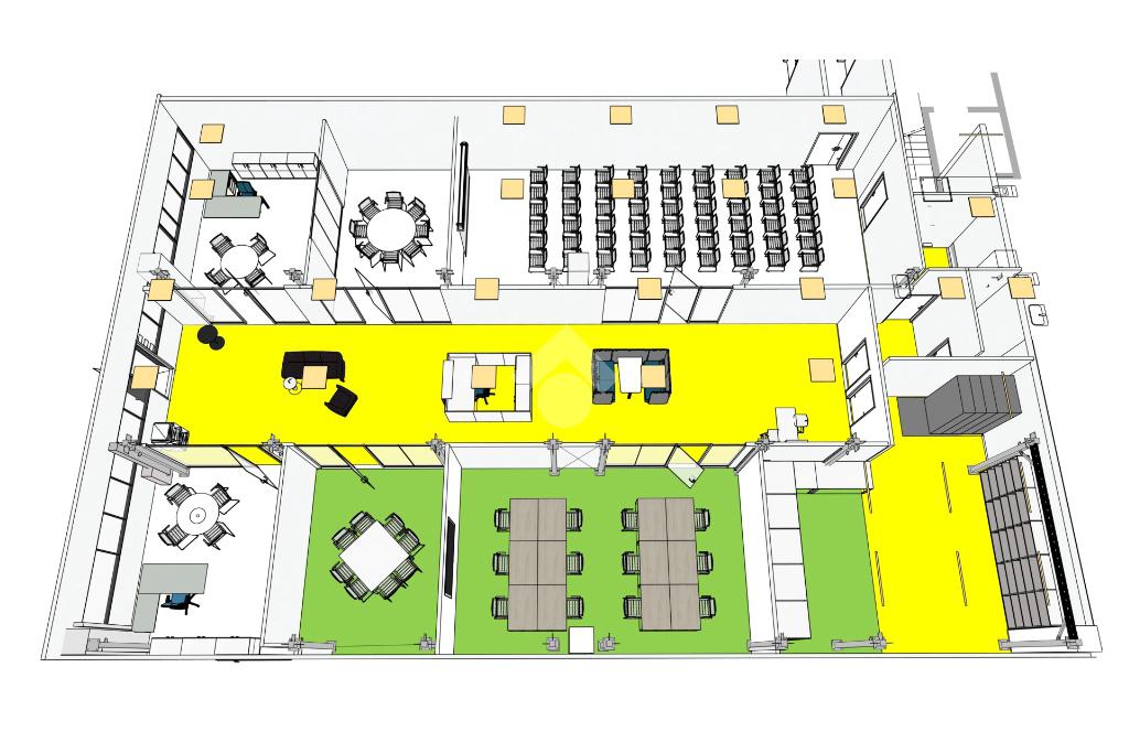 Vengono condivisi con un'altra attività gli ambienti comuni, quali: la reception, i servizi igienici doppi e, a richiesta, la sala riunioni.