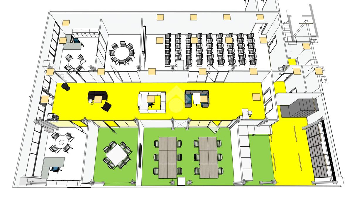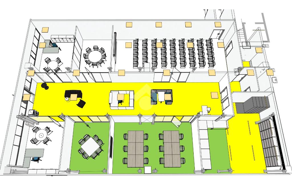 Vengono condivisi con un'altra attività gli spazi comuni, quali: la reception, i servizi igienici doppi e, a richiesta, la sala riunioni.